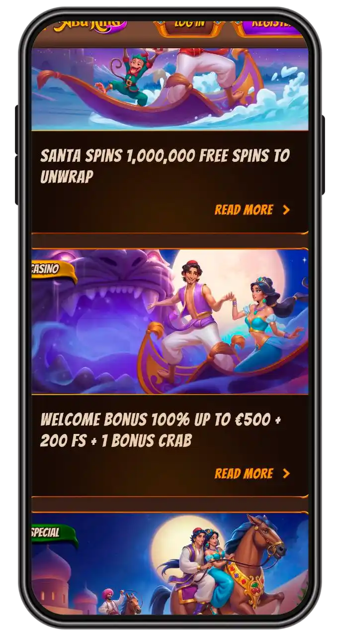 Australian players can enjoy the AbuKing Casino app with access to all the content without downloading anything. Try hundreds of pokies, cash in and out with AUD, and claim bonuses while playing on your mobile device. Play at the AbuKing online casino on Android and iOS with a 100% welcome offer of up to AU$750 + 200 FS!