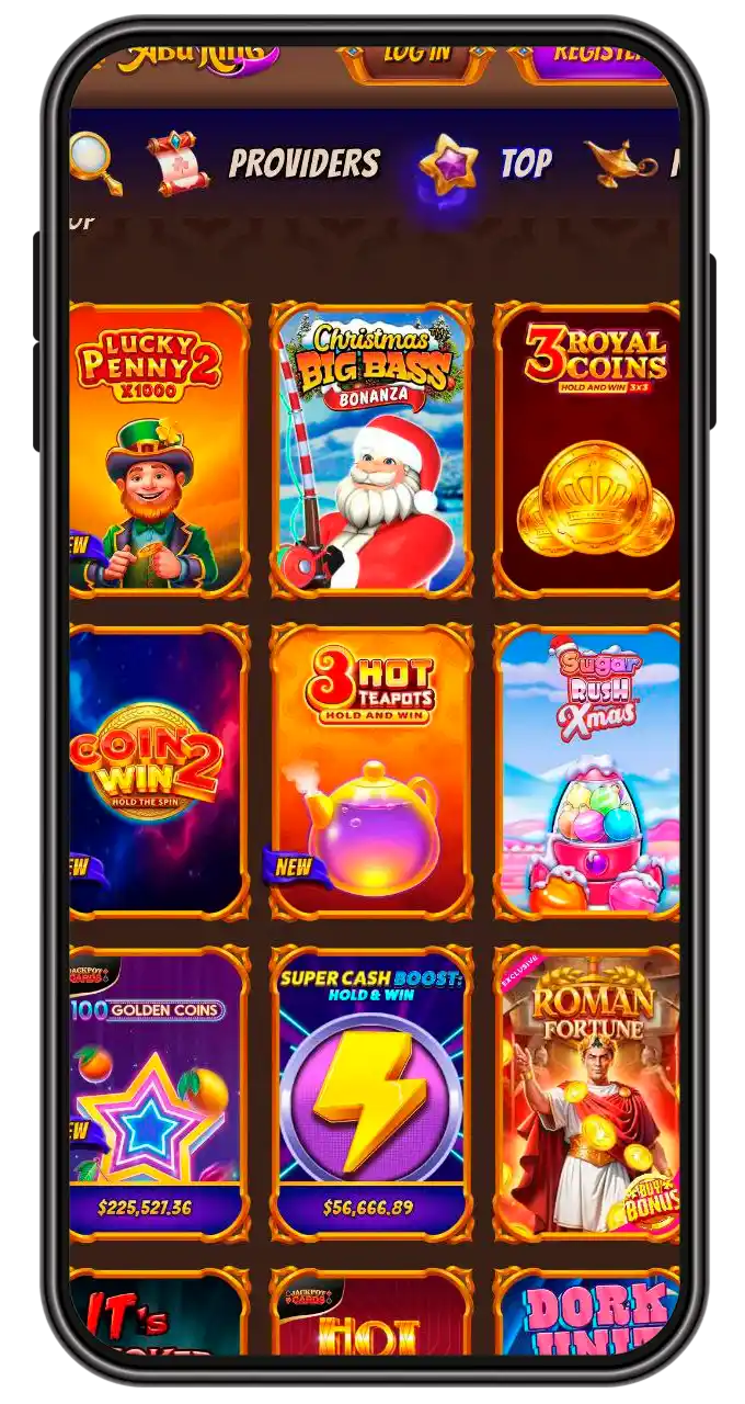 The first thing you notice when opening the AbuKing app is the vibrant design with nostalgic characters. However, the casino also offers several other interesting features: